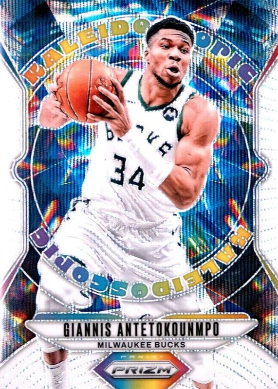 The Giannis Antetokounmpo 2024 Prizm #11 Kaleidoscopic - White Wave /20 card in Raw condition has not changed in price in the last 30 days and was last sold for $34.00 .