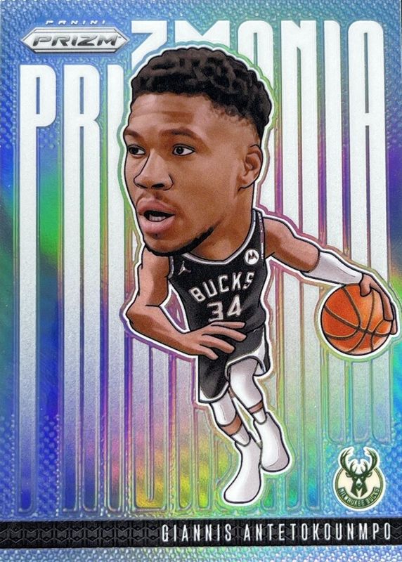 The Giannis Antetokounmpo 2024 Prizm #18 Prizmania /(SSP) card in Raw condition has moved down -$15.00 (-2.7%) in the last 30 days and was last sold for $535.00 .