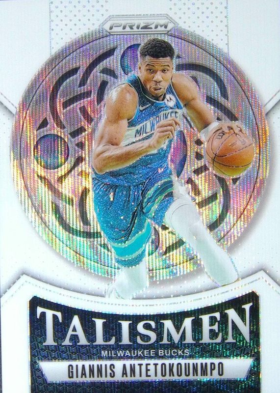The Giannis Antetokounmpo 2024 Prizm #12 Talismen - White Wave /20 card in Raw condition has not changed in price in the last 30 days and was last sold for $35.00 .