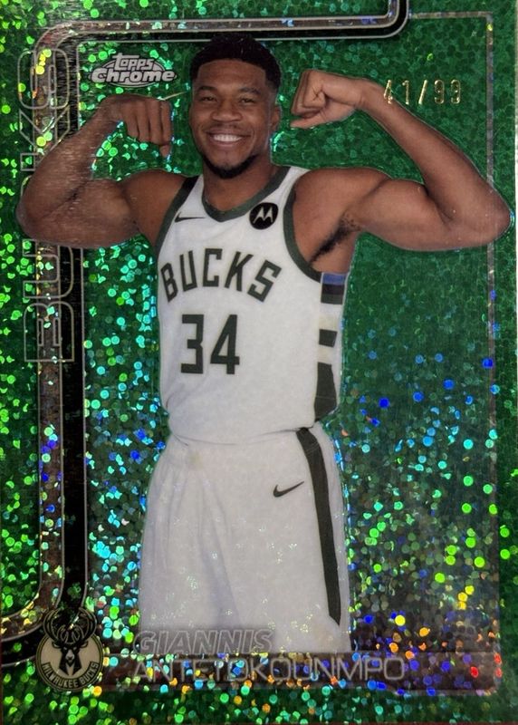 Best Prices Available For Sale of Giannis Antetokounmpo 2025 Topps Chrome #137 Image Variation - Green Speckle Refractor /99