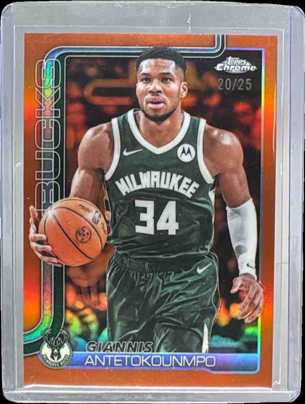 Giannis Antetokounmpo 2025 Topps Chrome #137 Orange Refractor /25 RAW Price Guide