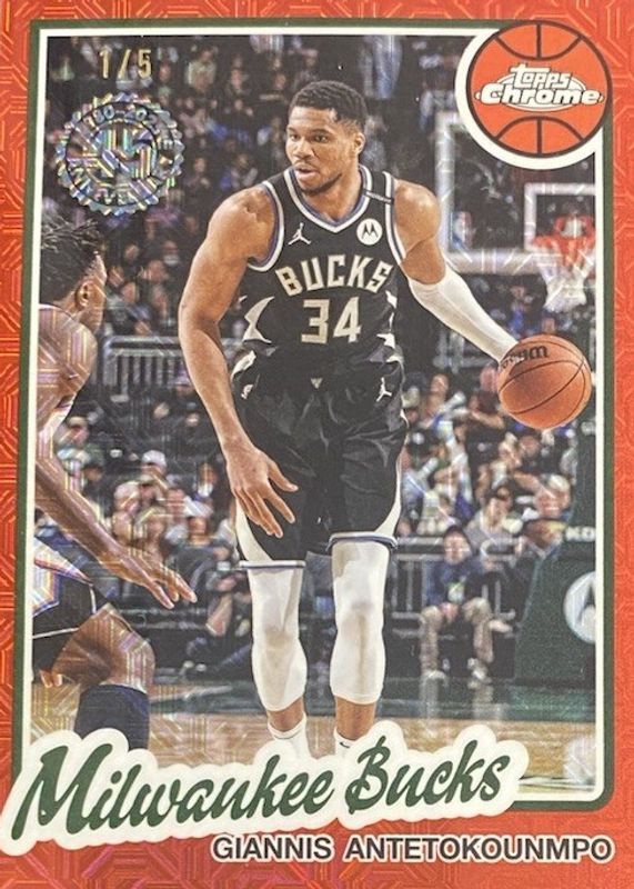 The Giannis Antetokounmpo 2025 Topps Silver Pack #TC-GA 1980-81 Topps Chrome - Red Refractor /5 card in Raw condition has not changed in price in the last 30 days and was last sold for $132.49 .