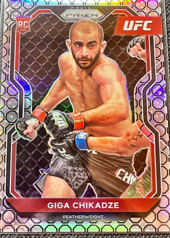 The Giga Chikadze 2021 Prizm UFC #72 Octagon /8 Rookie card in Raw condition has not changed in price in the last 30 days and was last sold for $31.00 .
