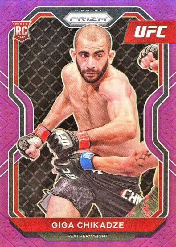 The Giga Chikadze 2021 Prizm UFC #72 Purple /149 Rookie card in Raw condition has not changed in price in the last 30 days and was last sold for $2.25 .