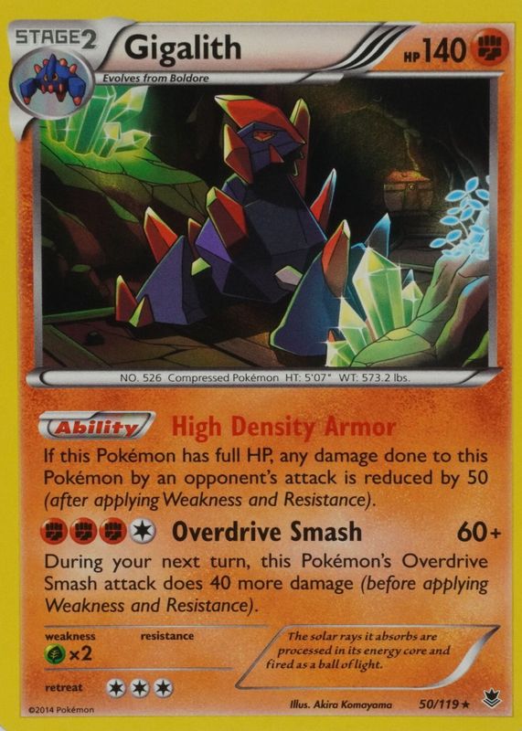 The Gigalith 2014 XY: Phantom Forces #050/119 Holo card in Raw TCG (Lightly Played) condition has moved up $0.19 (+9.5%) in the last 30 days and was last sold for $2.18 .
