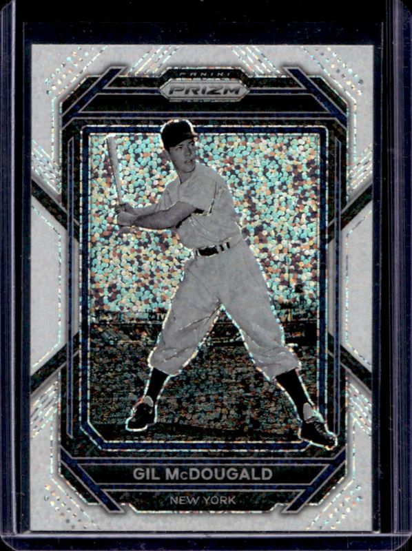 The Gil McDougald 2023 Prizm #67 White Sparkle card is 1 of 26 Gil McDougald's card variations in the 2023 Prizm set being tracked by Sports Card Investor, including Base, Blue Ice, Giraffe, Green Ice, and Hyper.