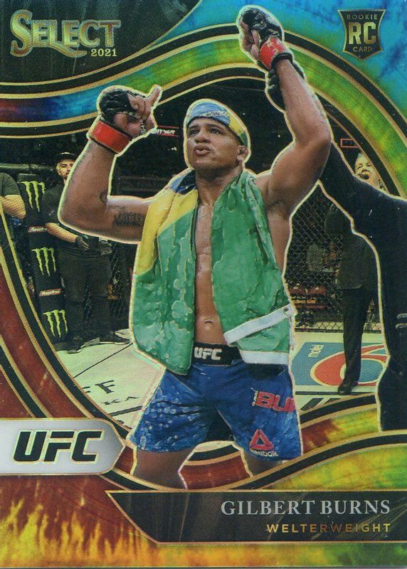 This card is 1 of 50 Gilbert Burns' card variations in the 2021 Select UFC set being tracked by Sports Card Investor, including Concourse, Concourse Disco, Concourse Scope, Concourse Silver, and Concourse Tri-Color.