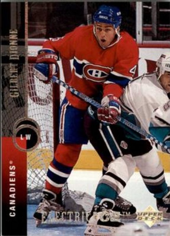 The Gilbert Dionne 1994 Upper Deck #57 Electric Ice card is 1 of 4 Gilbert Dionne's card variations in the 1994 Upper Deck set being tracked by Sports Card Investor, including #384 Base, #57 Base, and #384 Electric Ice.