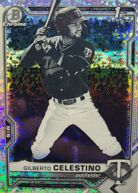 This card is 1 of 22 Gilberto Celestino's card variations in the 2021 Bowman Chrome set being tracked by Sports Card Investor, including Prospects (1st), Prospects - Shimmer Refractor (1st), Prospects - Refractor /499 (1st), Prospects - Speckle Refractor /299 (1st), and Prospects - Purple Refractor /250 (1st).
