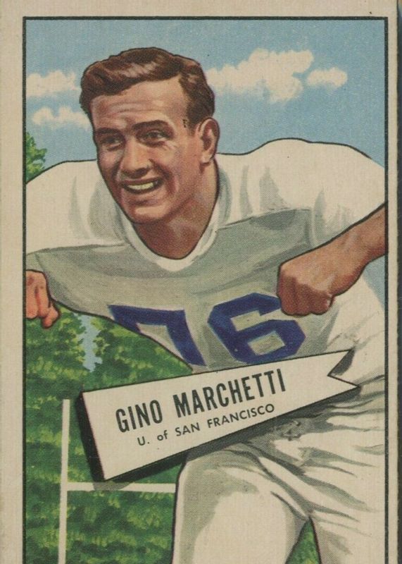 Gino Marchetti's Football cards are available in at least 12 sets. Gino Marchetti's biggest 7-day price movers are 1952 Bowman Large #23 Base, 1952 Bowman Small #23 Base, and 1963 Topps #8 Base.