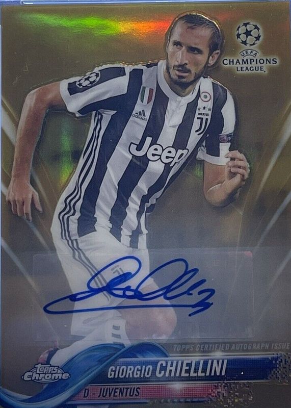 Giorgio Chiellini's Soccer cards are available in at least 28 sets. Giorgio Chiellini's biggest 7-day price movers are 2017 Topps Chrome UEFA Champions League #90 Autographs - Gold Refractor /50, 2024 Topps Chrome Sapphire Edition UEFA Euro #DB-3 Dream Big - Black /10, and 2024 Topps Chrome Sapphire Edition UEFA Euro #DB-3 Dream Big - Padparadscha /1.