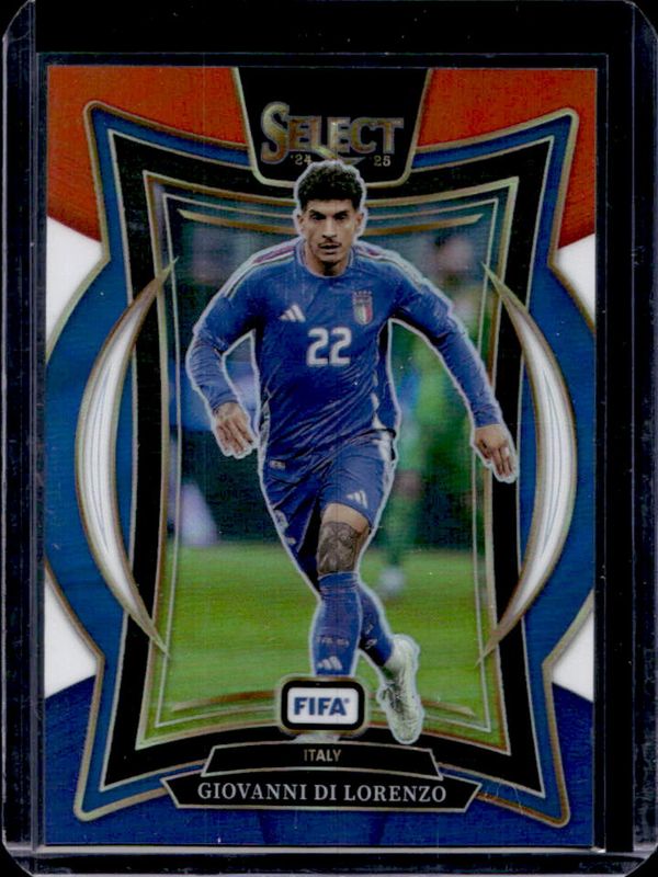 The Giovanni Di Lorenzo 2024 Select FIFA #87 Terrace Multi-Color card is 1 of 32 Giovanni Di Lorenzo's card variations in the 2024 Select FIFA set being tracked by Sports Card Investor, including Terrace, Terrace Blue, Terrace Blue Lazer, Terrace Checkerboard, and Terrace Flash.