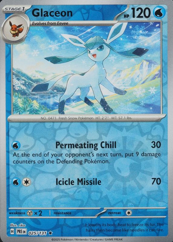 Glaceon 2025 Scarlet & Violet: Prismatic Evolutions #025/131 Reverse Holo RAW TCG (NEAR MINT) Price Guide