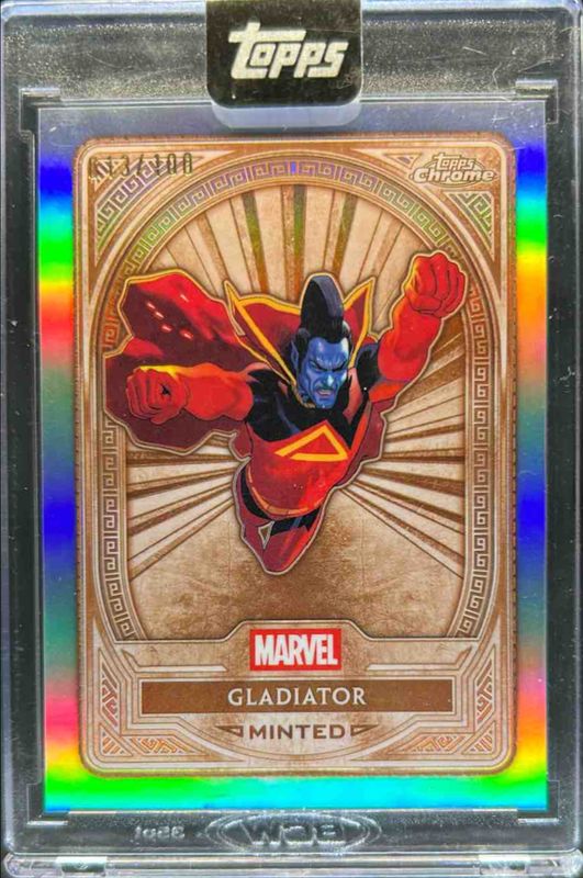 The Gladiator 2025 Topps Mint #27 Chrome - Refractor /100 card is 1 of 16 Gladiator's card variations in the 2025 Topps Mint set being tracked by Sports Card Investor, including Base, Green Mint Foil /75, Gold Foil /50, Orange Foil /25, and Black Foil /10.