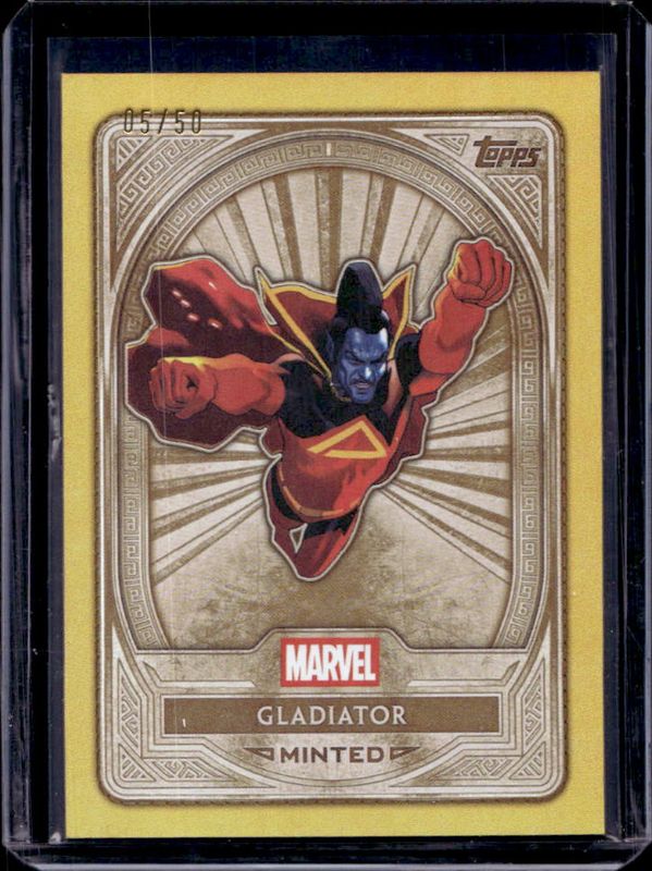 The Gladiator 2025 Topps Mint #27 Gold Foil /50 card is 1 of 16 Gladiator's card variations in the 2025 Topps Mint set being tracked by Sports Card Investor, including Base, Green Mint Foil /75, Orange Foil /25, Black Foil /10, and Red Foil /5.