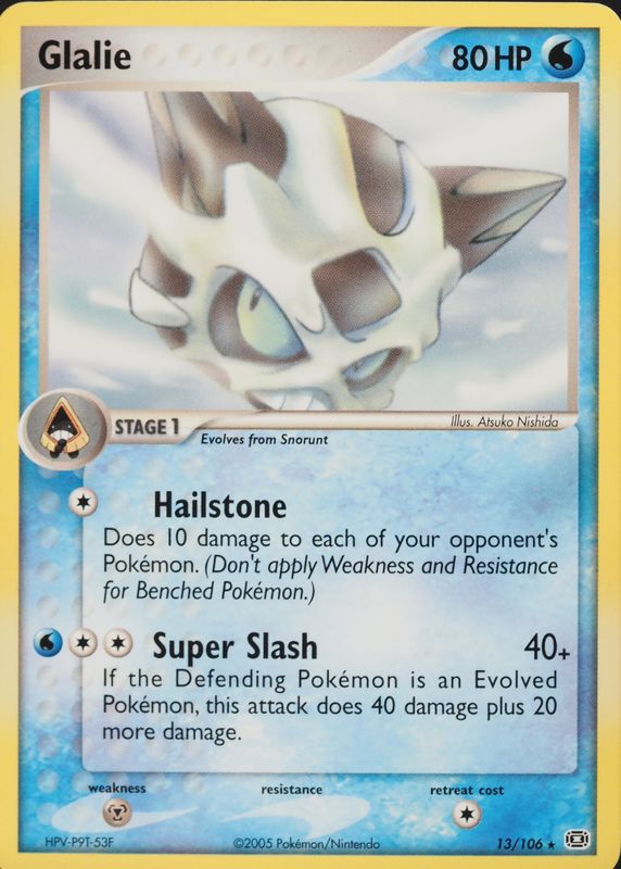Glalie 13/106 VLP / NM - RARE EX Emerald Pokemon Card - Atsuko Nishida Art
