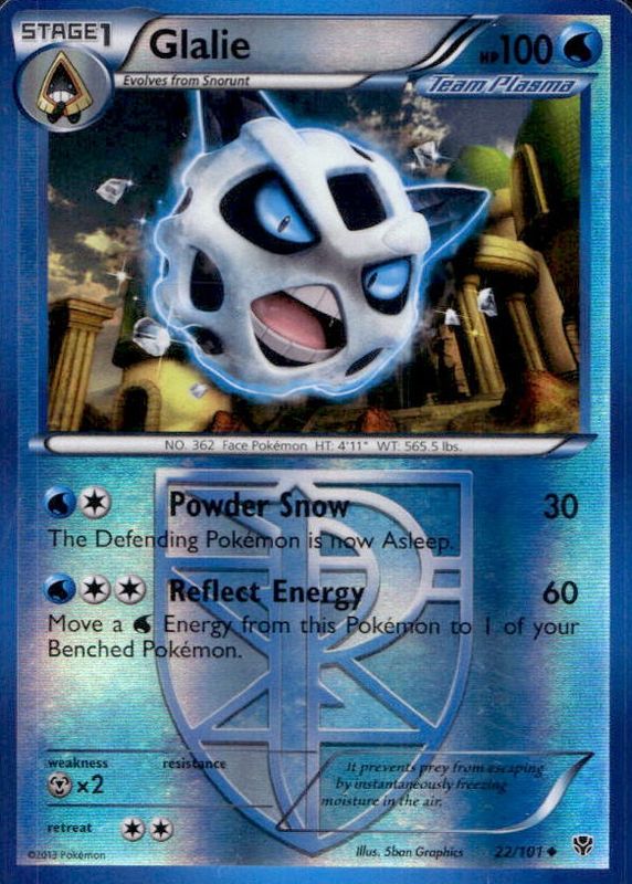 Glalie 2013 Black & White: Plasma Blast #022/101 Reverse Holo RAW TCG (LIGHTLY PLAYED) Price Guide