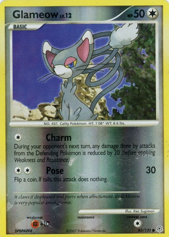 Glameow 2007 Diamond & Pearl #083/130 Reverse Holo RAW TCG (LIGHTLY PLAYED) Price Guide