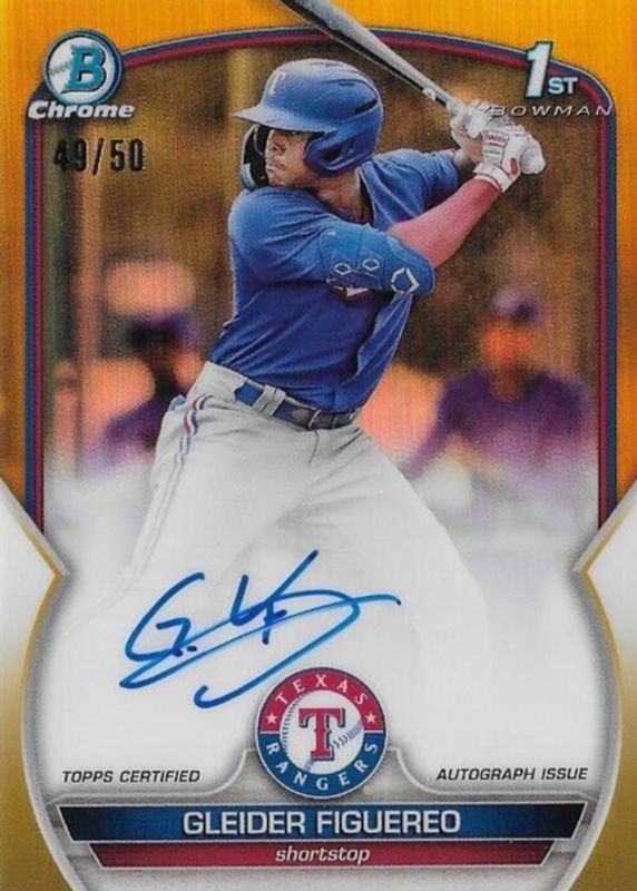 Gleider Figuereo 2023 Bowman #CPA-GF Chrome Prospect Auto - Gold Refractor /50 (1st) RAW Price Guide