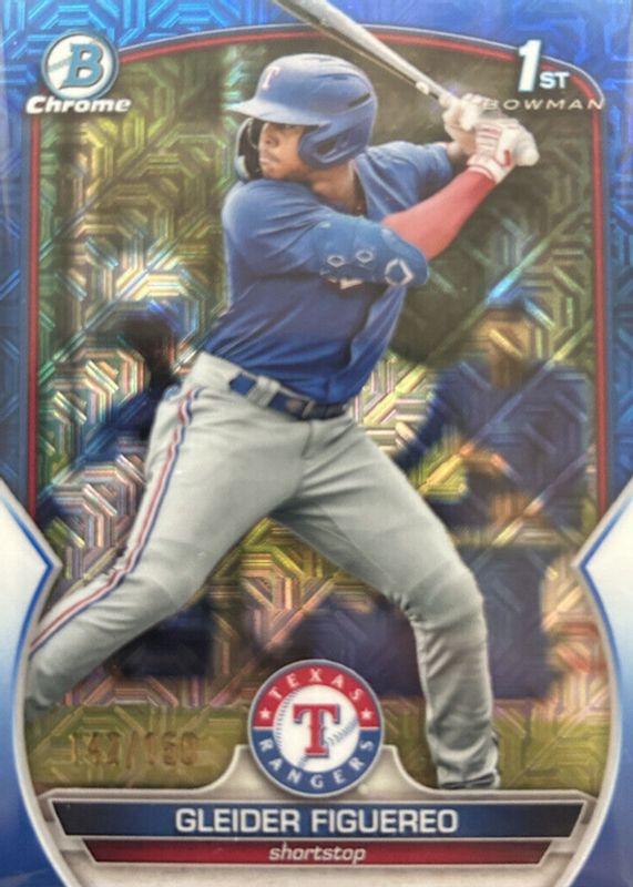 2023 Bowman Chrome Gleider Figuereo Mojo Blue Refractor /150 1st Bowman Rangers