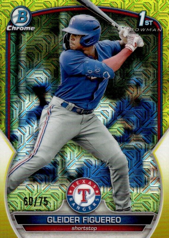 Gleider Figuereo YELLOW MOJO #11/75 ROOKIE 1st RANGERS 2023 Bowman j#BP59
