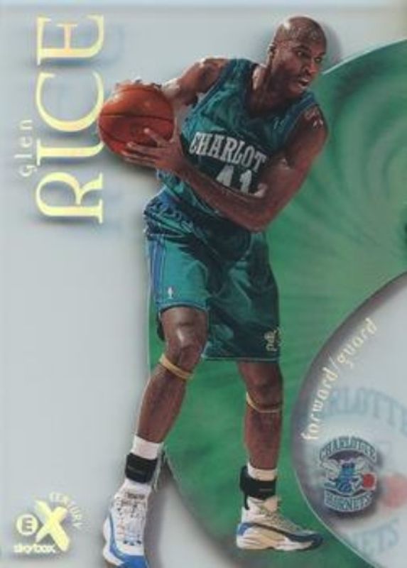 The Glen Rice 1998 Skybox E-X Century #28 Base card is 1 of 3 Glen Rice's card variations in the 1998 Skybox E-X Century set being tracked by Sports Card Investor, including Essential Credentials Future (/63), and Essential Credentials Now (/28).