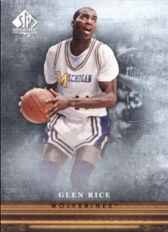 The Glen Rice 2013 SP Authentic #CC-27 Canvas Collection card is 1 of 15 Glen Rice's card variations in the 2013 SP Authentic set being tracked by Sports Card Investor, including Base, 2001-02 SP Rookie FX Autographs, 2001-02 SP Rookie FX Autographs - Film, 2001-02 SP Rookie FX - Film, and Canvas Collection Autographs.