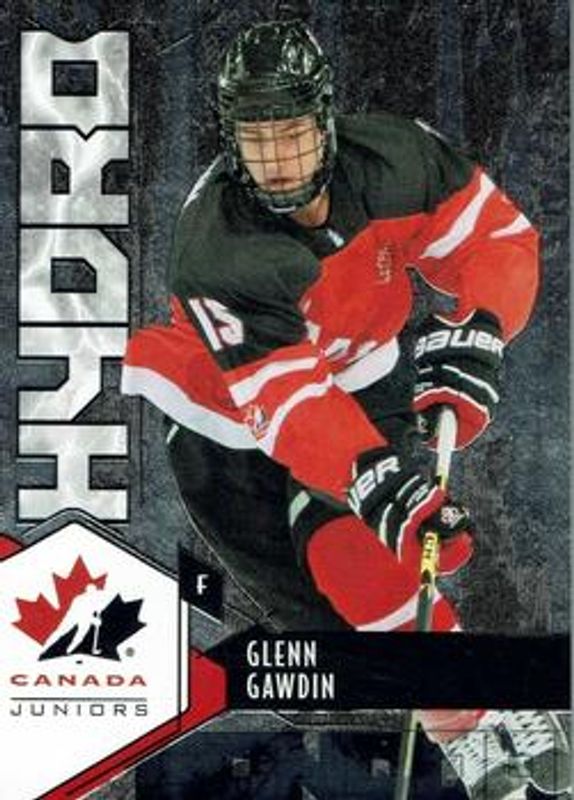 The Glenn Gawdin 2015 Upper Deck Team Canada Juniors #H-17 Hydro card is 1 of 17 Glenn Gawdin's card variations in the 2015 Upper Deck Team Canada Juniors set being tracked by Sports Card Investor, including Base, Gold, Exclusives /199, High Gloss /25, and Printing Plates Black /1.