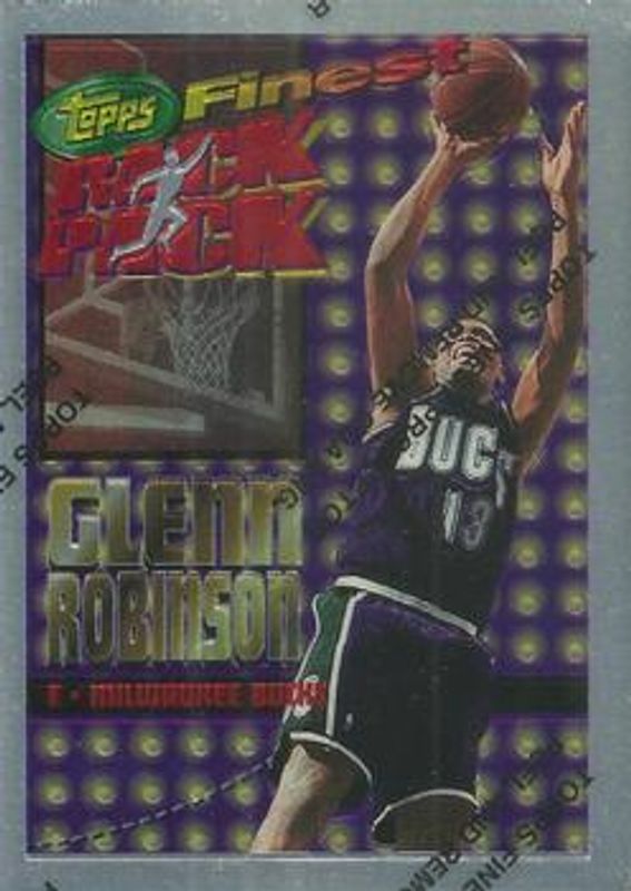 The Glenn Robinson 1994 Topps Finest #RP5 Rack Pack Rookie card is 1 of 3 Glenn Robinson's card variations in the 1994 Topps Finest set being tracked by Sports Card Investor, including Base (No Coating), and Refractor (No Coating).