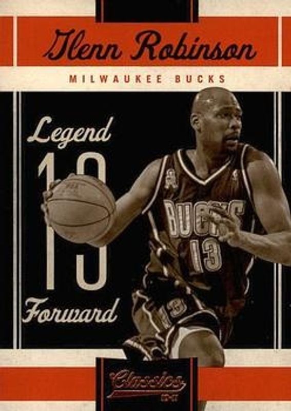 The Glenn Robinson 2010 Classics #119 Base /999 card is 1 of 5 Glenn Robinson's card variations in the 2010 Classics set being tracked by Sports Card Investor, including Timeless Tributes Silver /250, Timeless Tributes Gold /100, Timeless Tributes Platinum /25, and Timeless Tributes Black /1.