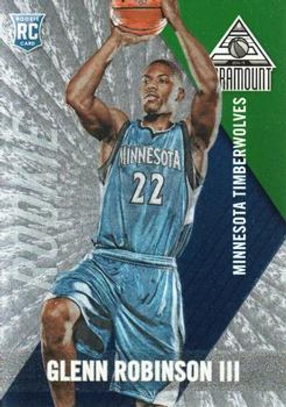 The Glenn Robinson III 2014 Paramount #49 Base /25 Rookie card is 1 of 18 Glenn Robinson III's card variations in the 2014 Paramount set being tracked by Sports Card Investor, including Base /25, Bronze /50, Blue /25, Gold /10, and Next Day Autographs /100.