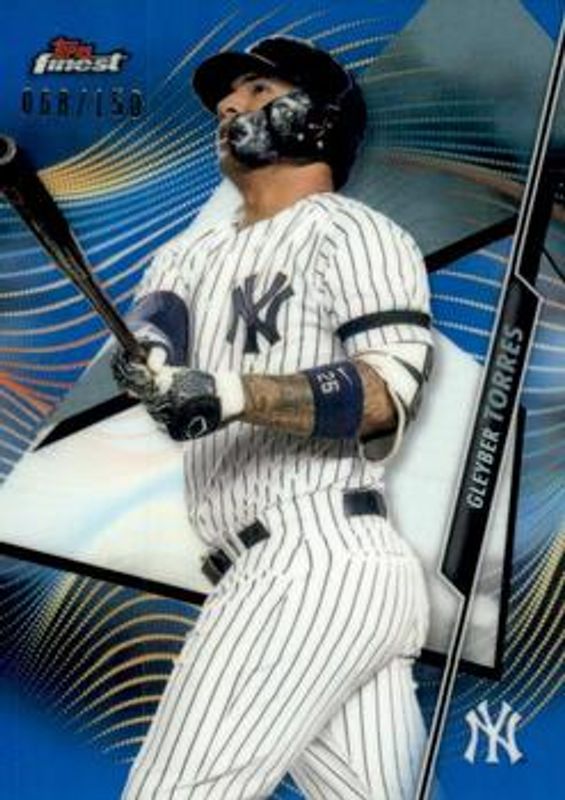 The Gleyber Torres 2020 Topps Finest #37 Blue Refractor /150 card is 1 of 17 Gleyber Torres' card variations in the 2020 Topps Finest set being tracked by Sports Card Investor, including Base, Refractor, Purple Refractor /250, Green Refractor /99, and Gold Refractor /50.