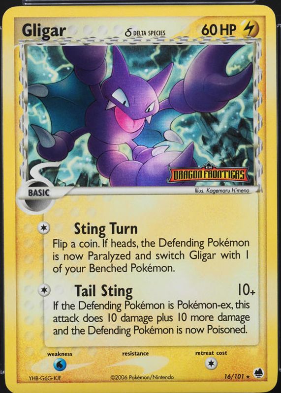 The Gligar 2006 EX: Dragon Frontiers #016/101 Reverse Holo card in Raw TCG (Lightly Played) condition has moved up $6.55 (+68.9%) in the last 30 days and was last sold for $16.05 .