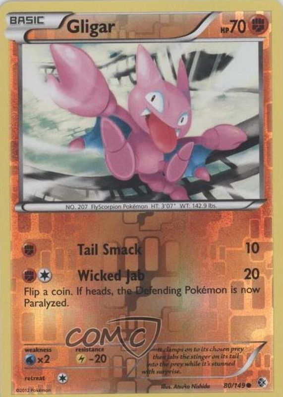 Gligar 2012 Black & White: Boundaries Crossed #080/149 Reverse Holo RAW TCG (LIGHTLY PLAYED) Price Guide