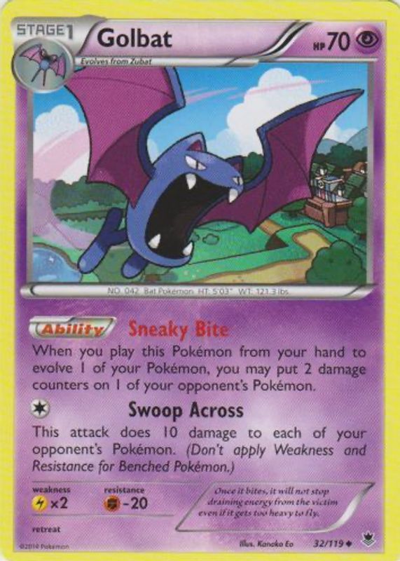 The Golbat 2014 XY: Phantom Forces #032/119 Base card in Raw TCG (Lightly Played) condition has not changed in price in the last 30 days and was last sold for $1.40 .