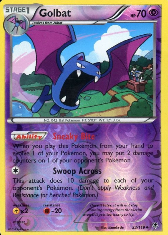 The Golbat 2014 XY: Phantom Forces #032/119 Reverse Holo card in Raw TCG (Near Mint) condition has not changed in price in the last 30 days and was last sold for $1.47 .