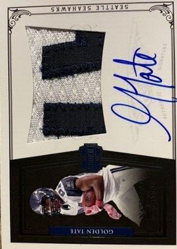 Golden Tate's Football cards are available in at least 44 sets. Golden Tate's biggest 7-day price movers are 2010 National Treasures #316 Rookie Patch Auto /99, 2010 National Treasures #316 Rookie Patch Auto - Platinum /5, and 2010 Topps Chrome #C11 Base.