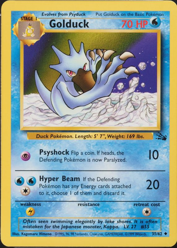 Golduck 1999 Fossil #35/62 Unlimited RAW TCG (NEAR MINT) Price Guide