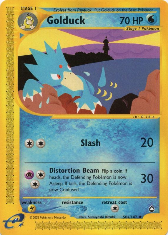 The Golduck 2003 Aquapolis #50a/147 Base card in Raw TCG (Near Mint) condition has moved up $6.49 (+76.4%) in the last 30 days and was last sold for $14.99 .
