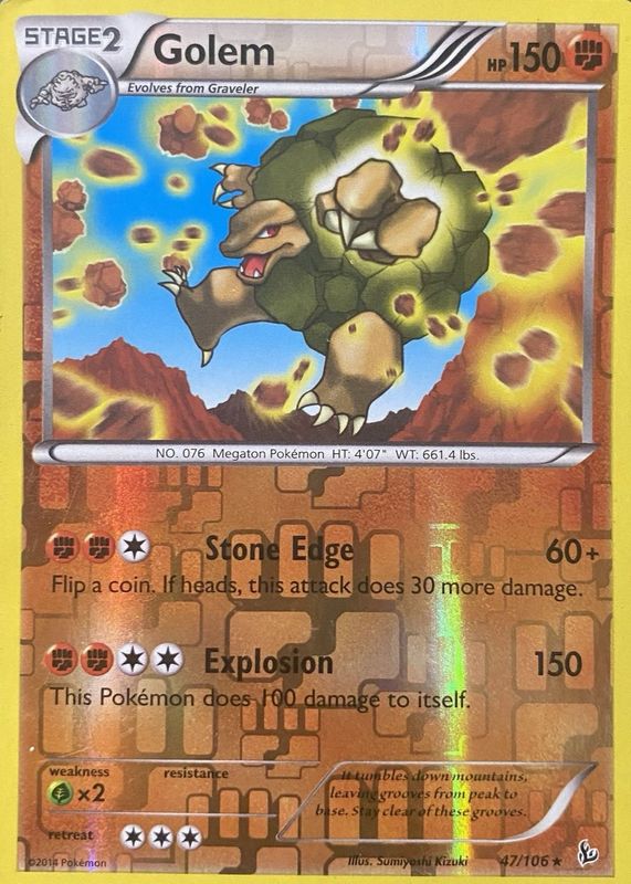 2014 Pokemon, Flashfire, #47/106 Golem, Reverse Holo Rare