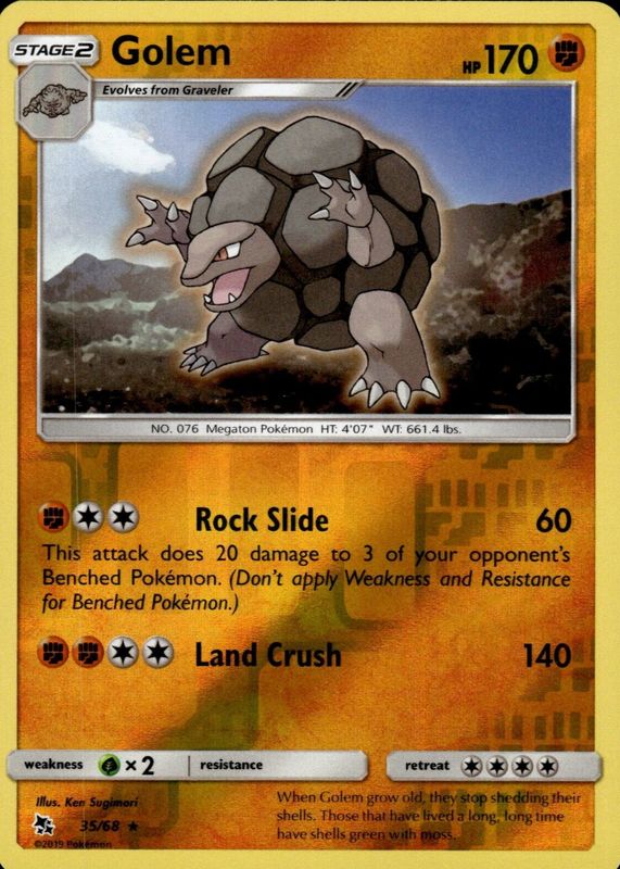 Golem 2019 Sun & Moon: Hidden Fates #35/68 Reverse Holo RAW TCG (NEAR MINT) Price Guide
