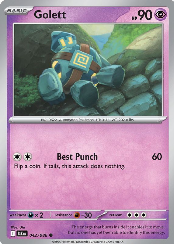 Pokemon TCG Golett 042/086 (Poke Ball Pattern) SV: Black Bolt Holo, NM/M