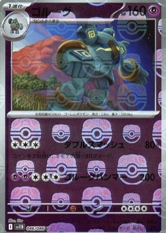 Golurk 2025 Japanese Scarlet & Violet: Black Bolt #046/086 Master Ball Reverse Holo RAW TCG (NEAR MINT) Price Guide