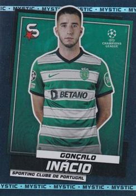 The Goncalo Inacio 2022 Topps UEFA Superstars #146 Mystic card is 1 of 16 Goncalo Inacio's card variations in the 2022 Topps UEFA Superstars set being tracked by Sports Card Investor, including #146 Base, #146 Common Yellow, #146b Common Yellow, #146 Fire & Ice Limited, and #146 Molten Rare.