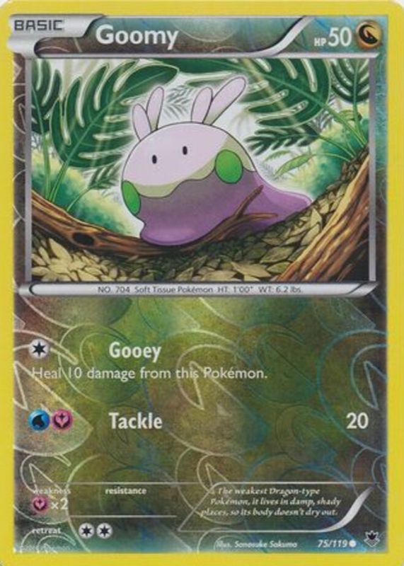 The Goomy 2014 XY: Phantom Forces #075/119 Reverse Holo card in Raw TCG (Lightly Played) condition has not changed in price in the last 30 days and was last sold for $1.45 .