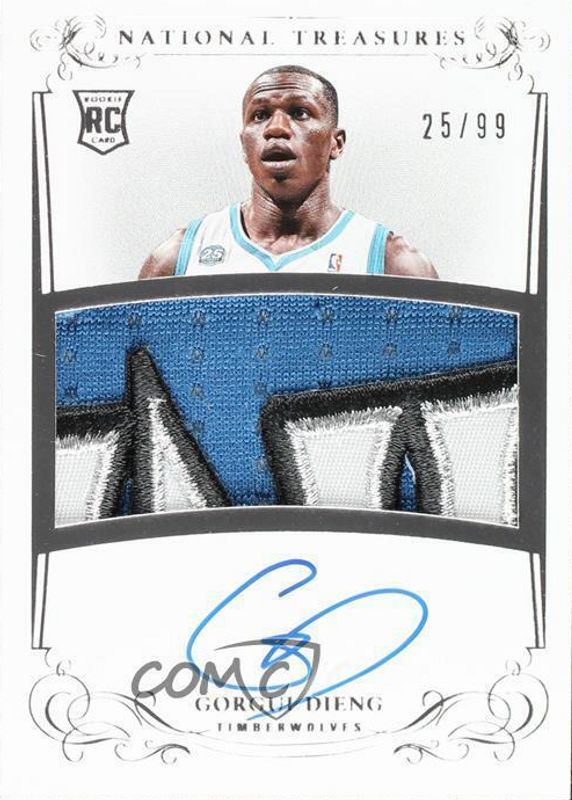 The Gorgui Dieng 2013 National Treasures #125 Rookie Patch Auto /99 card in Raw condition has not changed in price in the last 30 days and was last sold for $11.28 .