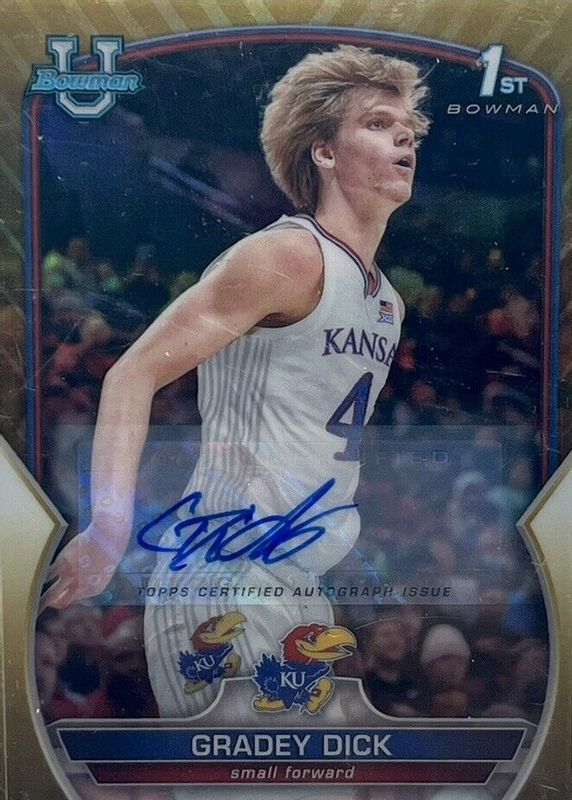 2022-23 Bowman University 1st Gold Refractor Gradey Dick 10/50 Auto Kansas