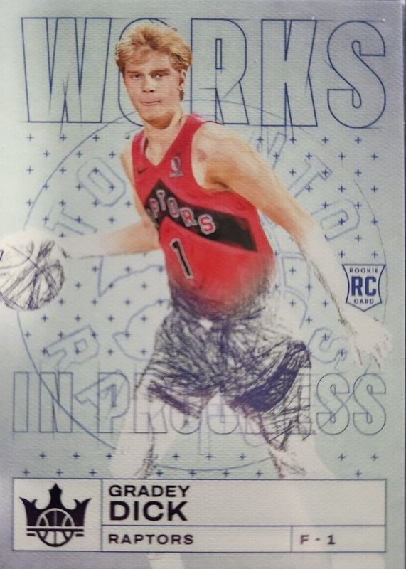 The Gradey Dick 2023 Court Kings #22 Works in Progress - Violet /49 Rookie card in Raw condition has not changed in price in the last 30 days and was last sold for $9.41 .