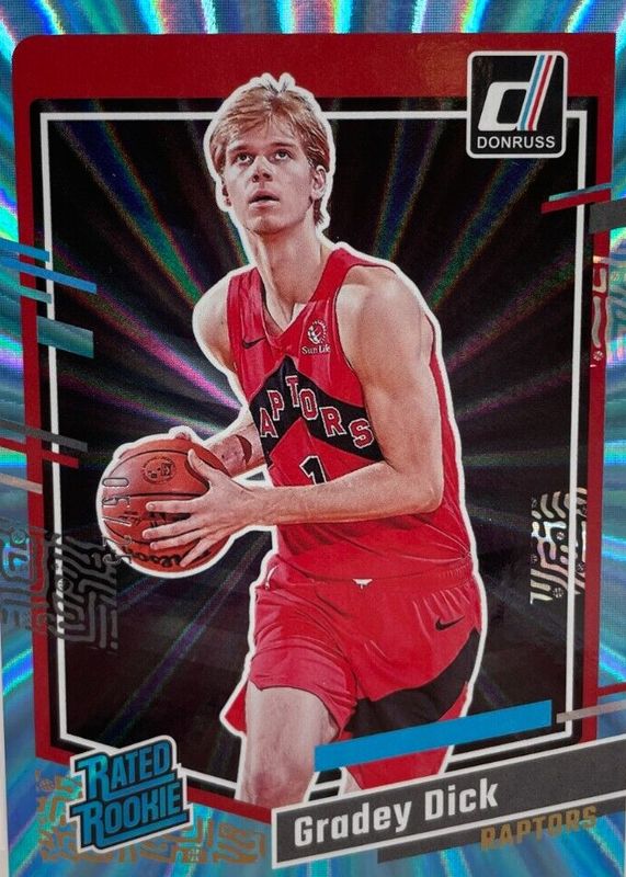 This card is 1 of 31 Gradey Dick's card variations in the 2023 Donruss set being tracked by Sports Card Investor, including Base, Choice, Holo Green Laser, Holo Red & Gold Laser, and Press Proof Silver.