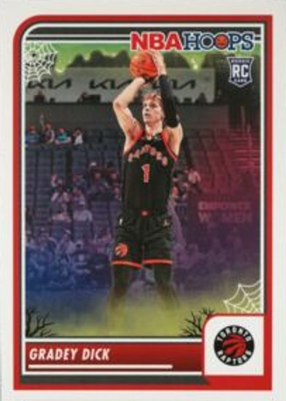 The Gradey Dick 2023 Haunted Hoops #251 Base Rookie card in Raw condition has not changed in price in the last 30 days and was last sold for $9.99 .